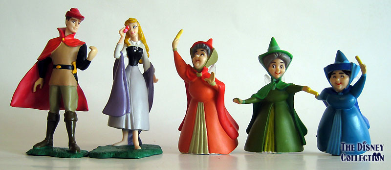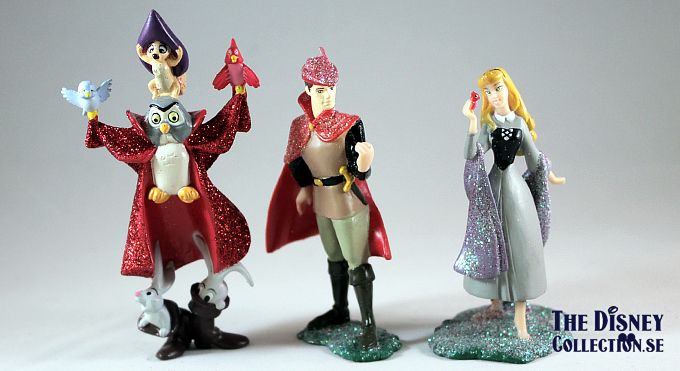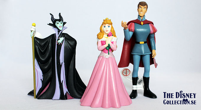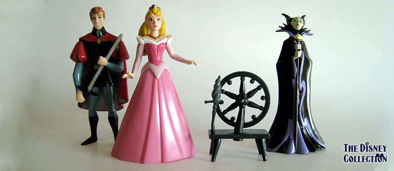 Characters: Sleeping Beauty Castle play set, towering with glittering fortress turrets, a spiral staircase, three-levels of play, and four fully sculptured figurines. Set includes Princess Aurora, Prince Phillip, Maleficent (with Diablo the Raven), and Samson figures.